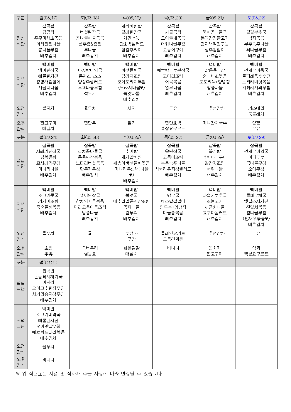 '동북노인복지센터 > 식단표' 카테고리의 다른 글