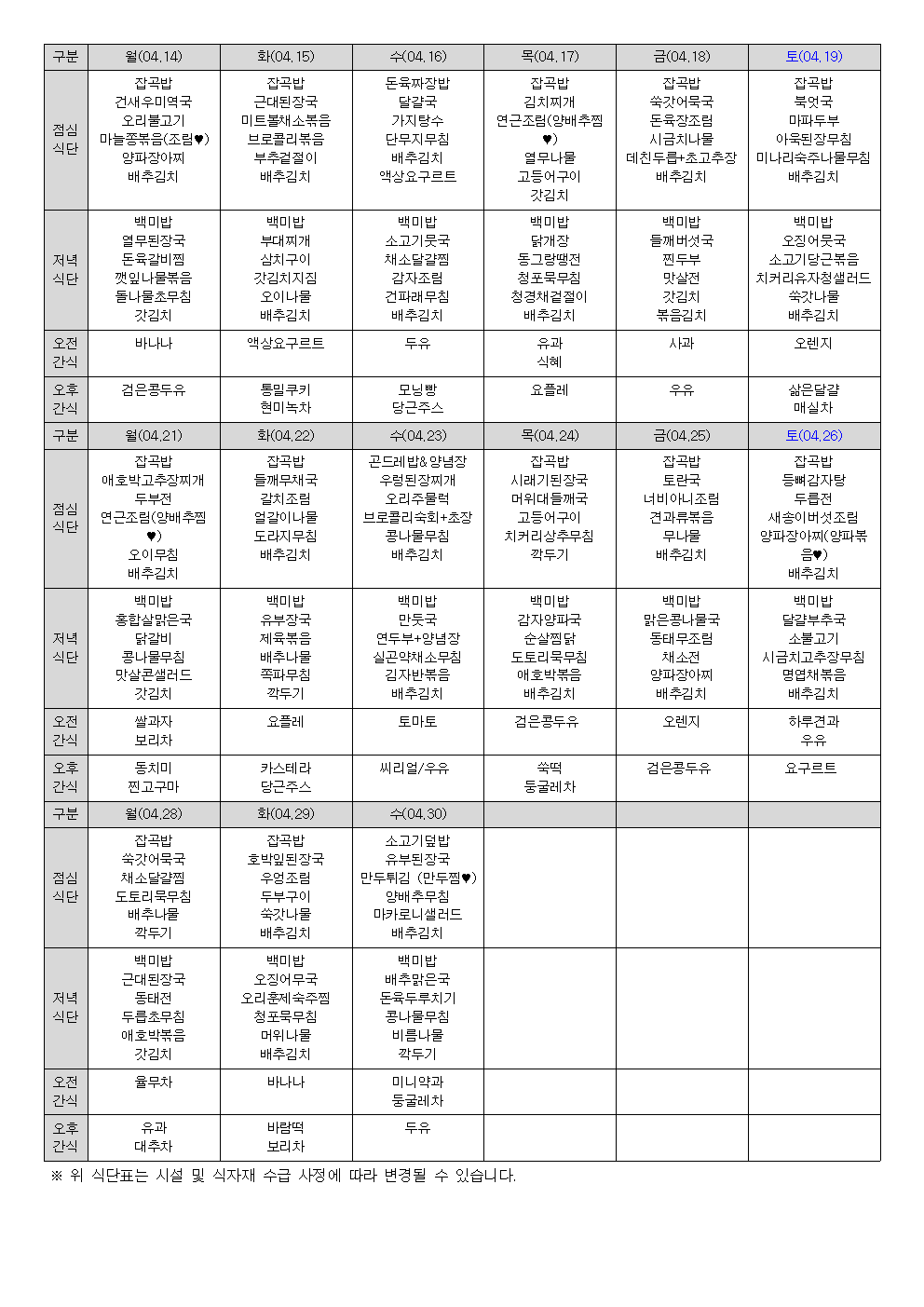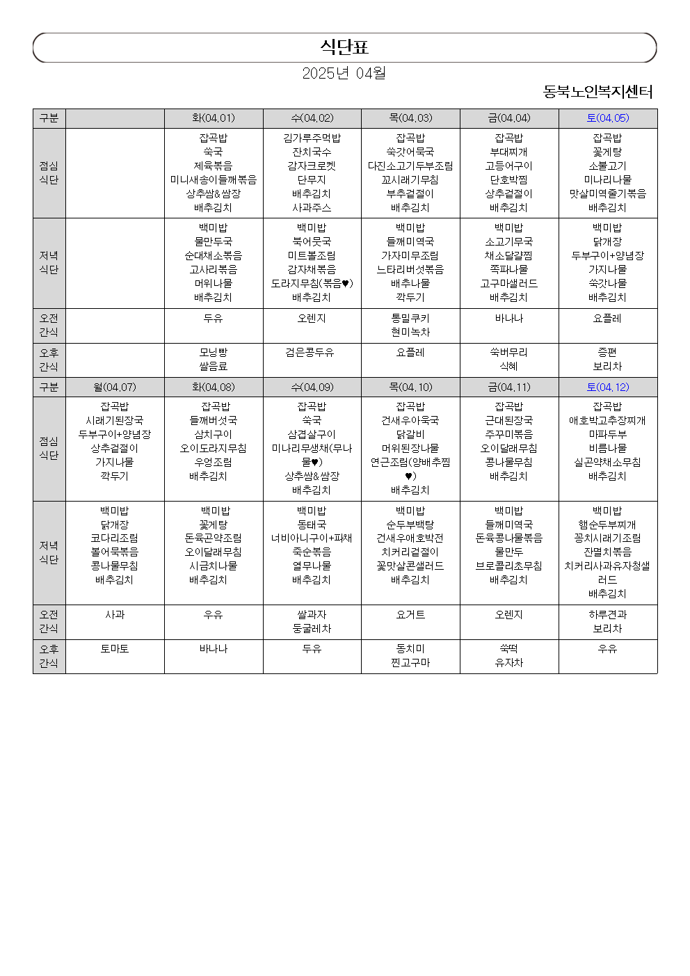 '동북노인복지센터 > 식단표' 카테고리의 다른 글