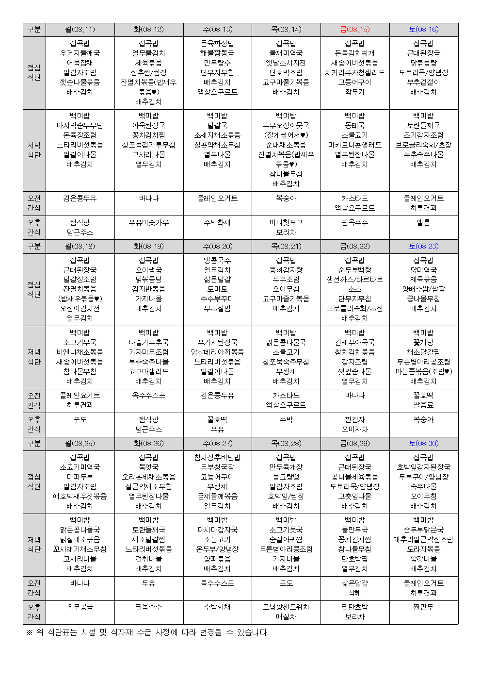 | 2025년 9월 식단표 (0) | 2025.09.16 |